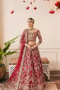 Embrace timeless allure with our captivating collection of dresses in dark red, meticulously curated to enhance your bridal wear or Walima wear ensemble. Whether you envision a classic gown for your Barat wear or a chic ensemble for your Nikah wear, our dark red dresses exude elegance and sophistication. With deep, rich hues reminiscent of passion and romance, our collection offers versatile options for every moment of your wedding celebration. Embrace the enchanting allure of dark red, designed to captivate and inspire on your special day.